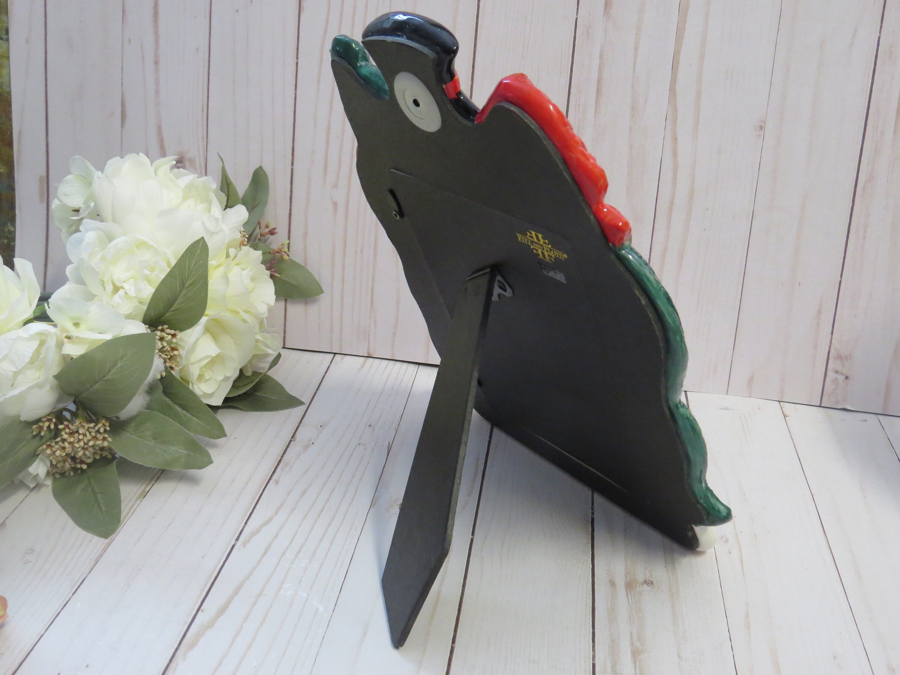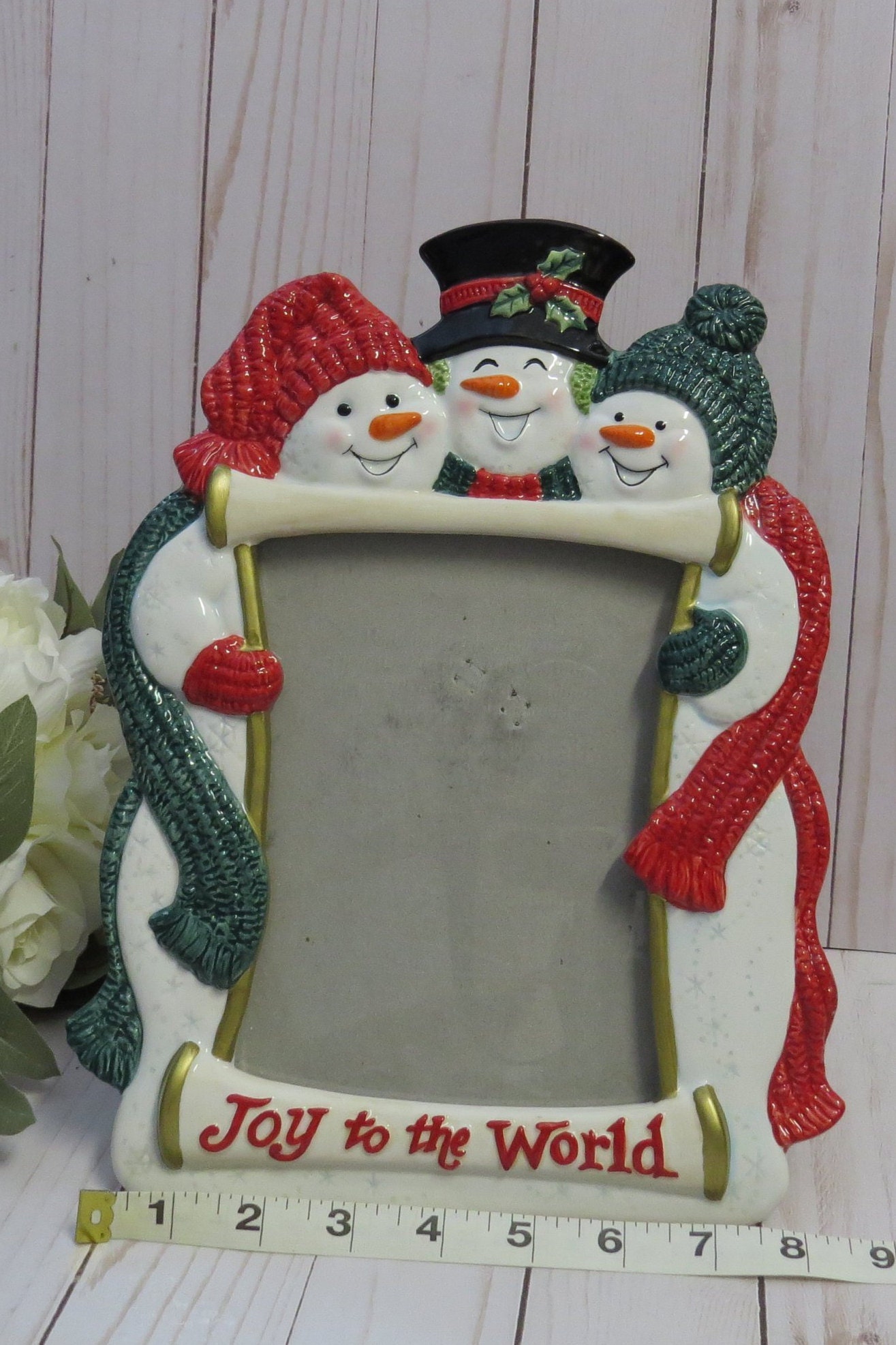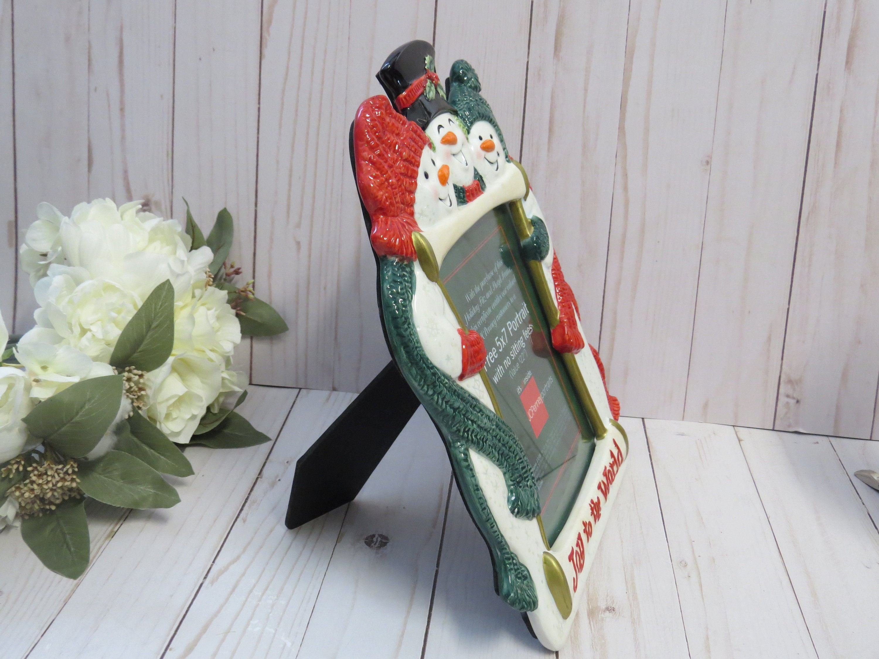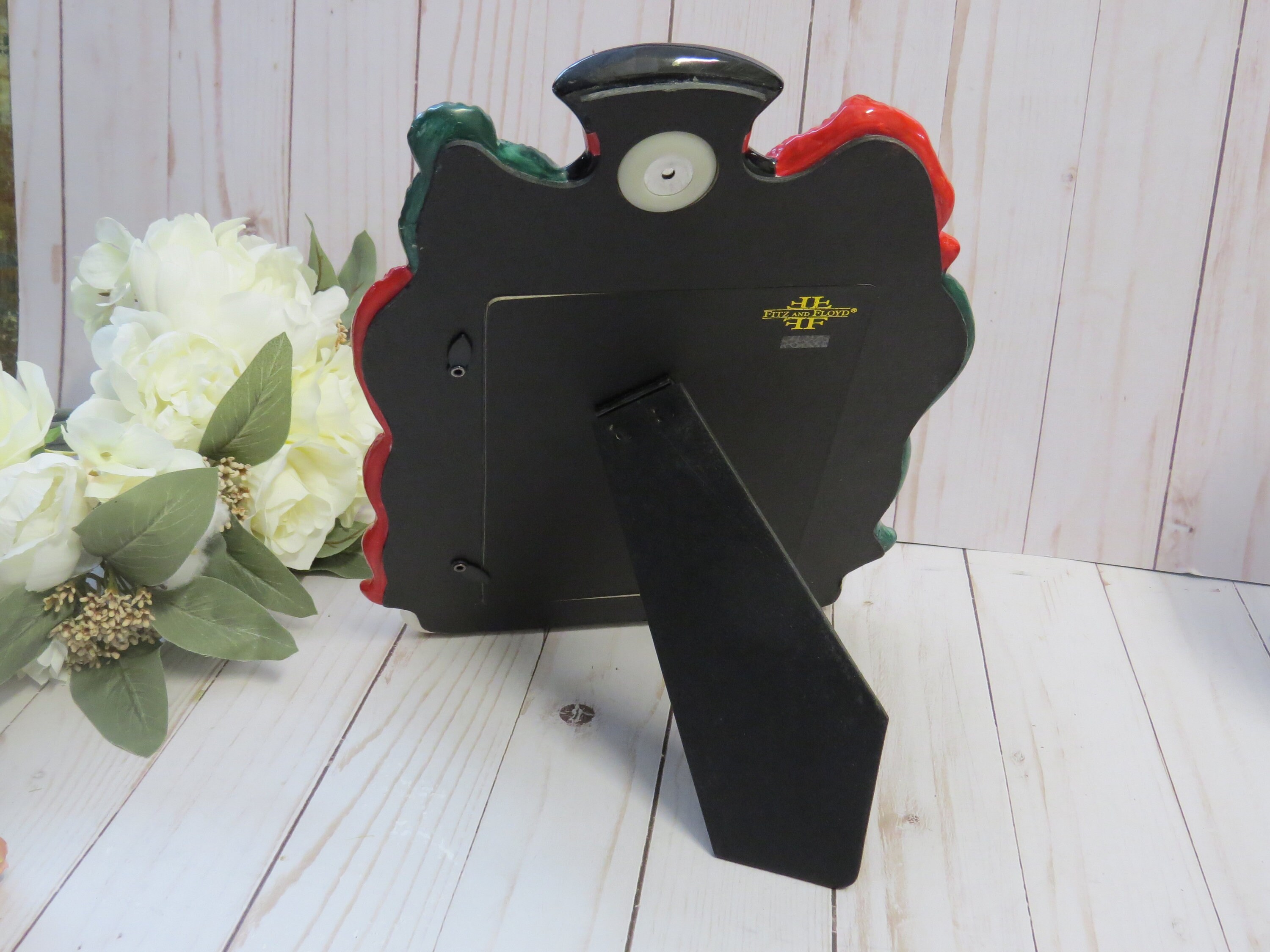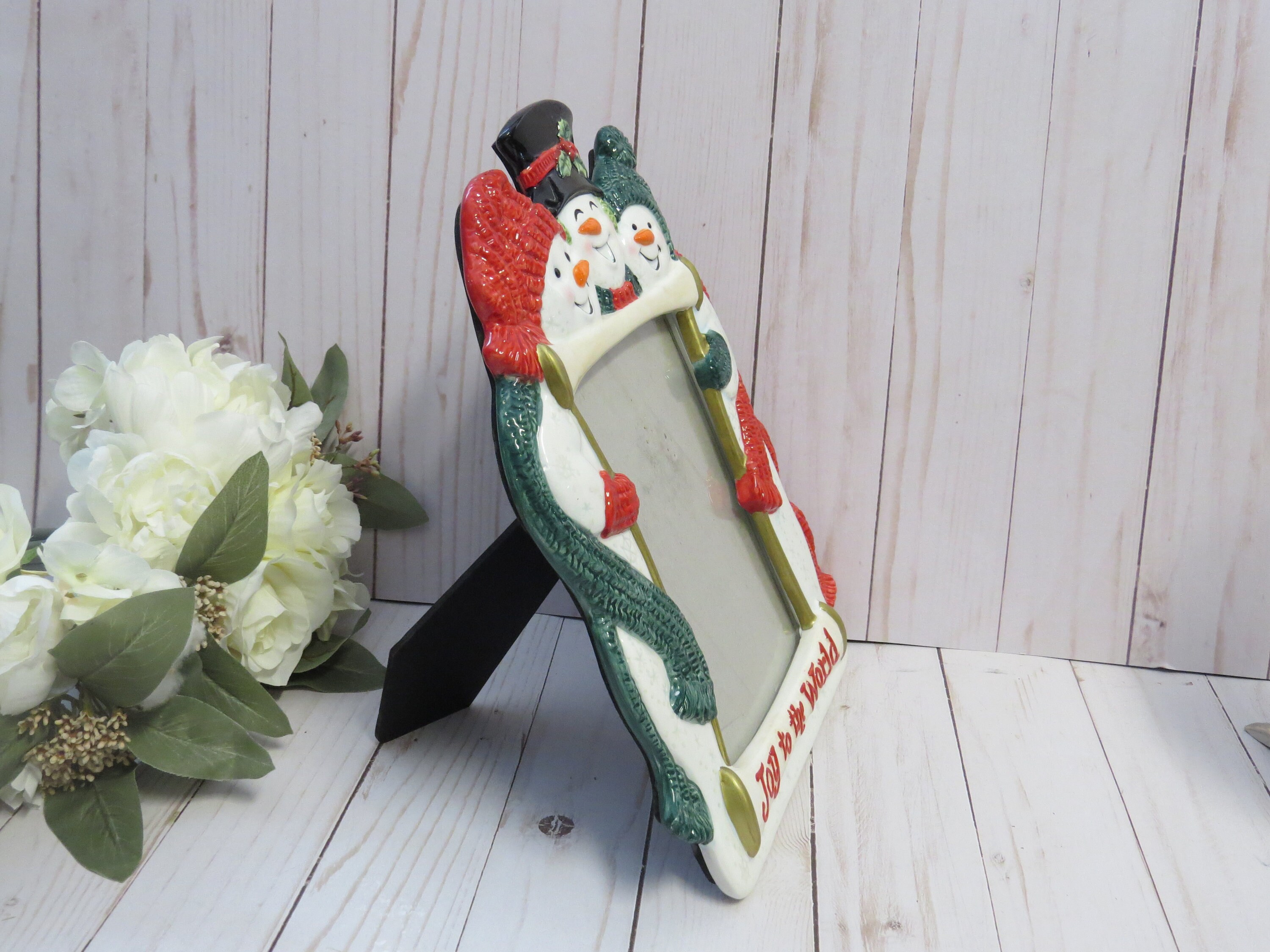 This cute Fitz and Floyd 5x7 photo frame is perfect for Xmas decoration! It was a music sensor as shown on the original box is not working anymore, but it doesn't erase the charm of this frame!
